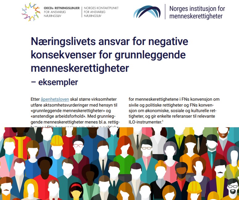 Norges kontaktpunkt for ansvarlig næringsliv og Norges institusjon for menneskerettigheter (NIM) har utarbeidet en tabell med eksempler på hvordan virksomheter kan ha negative konsekvenser for menneskerettighetene i FNs konvensjon om sivile og politiske rettigheter og FNs konvensjon om økonomiske, sosiale og kulturelle rettigheter, og gir enkelte referanser til relevante ILO-instrumenter.