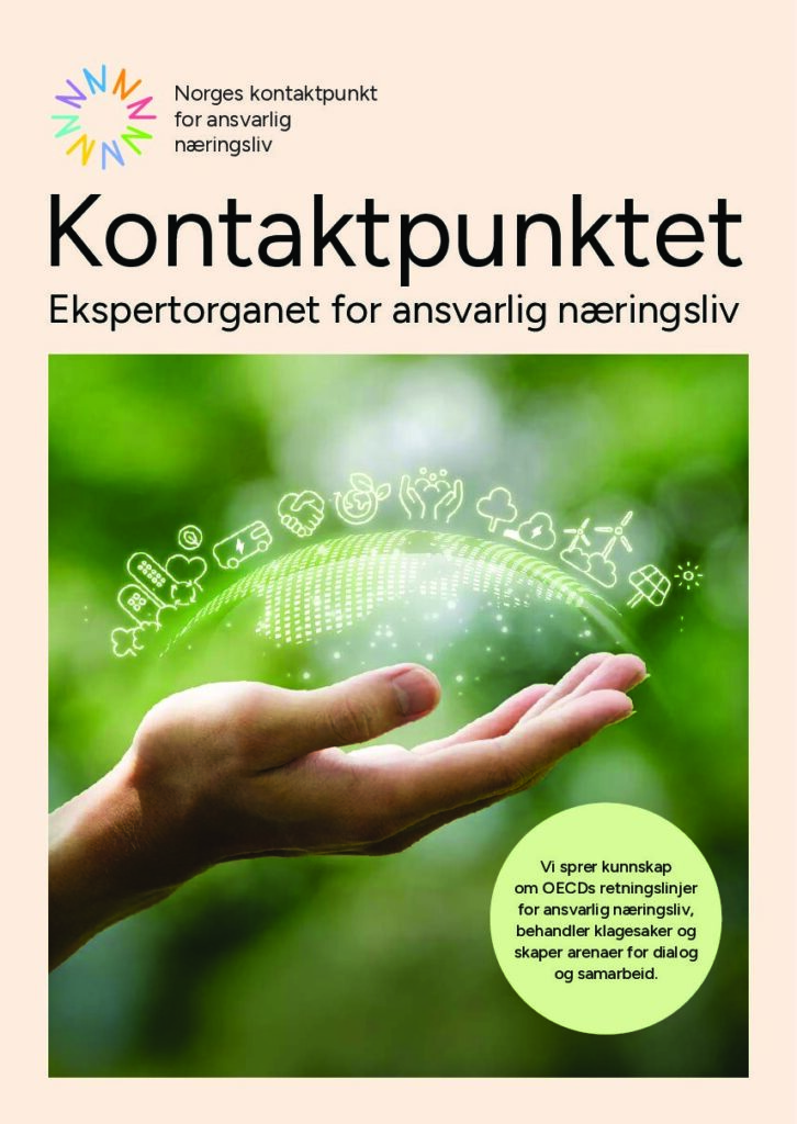 OECDs retningslinjer for flernasjonale selskaper om ansvarlig næringsliv beskriver hvilke oppgaver de nasjonale kontaktpunktene skal løse, og hvordan de skal drive sin virksomhet. Kravene i retningslinjene er nedfelt i et eget mandat fra den norske regjeringen regjeringen – sist oppdatert i 2022.